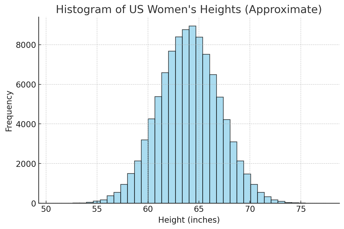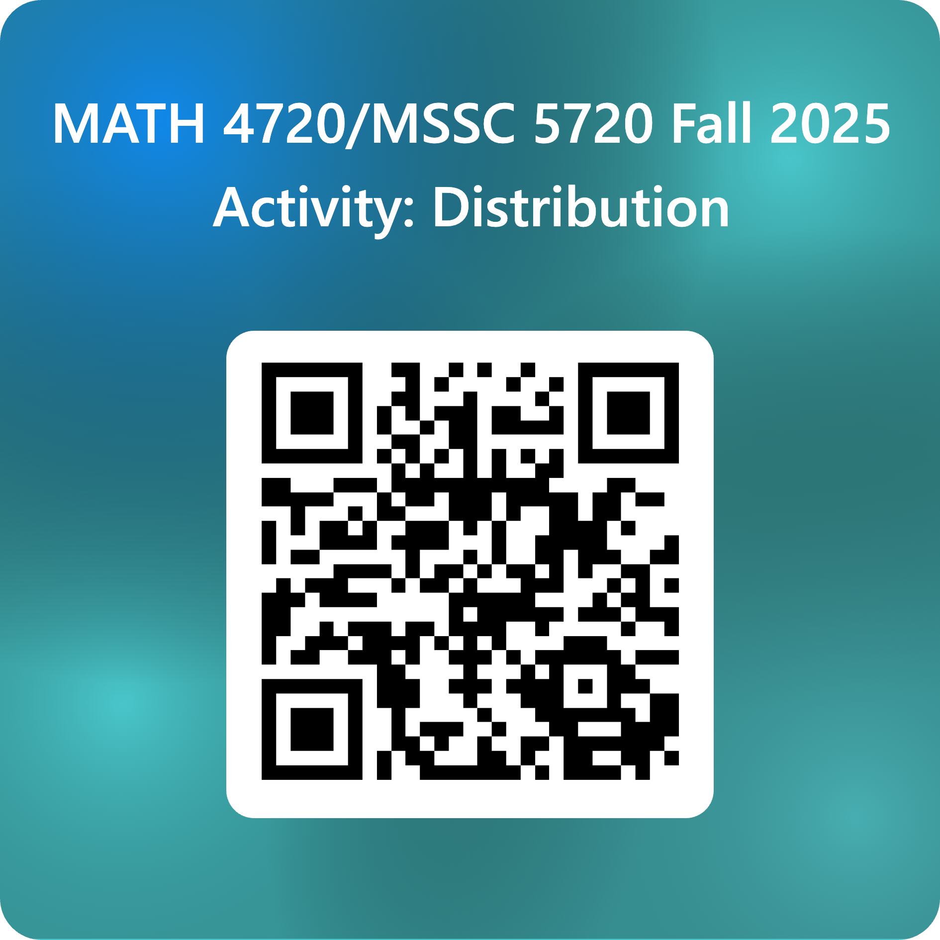 | Normal | Continuous measurements that are symmetric around a center with bell shape | \((\mu)\) mean, \((\sigma)\) standard deviation |