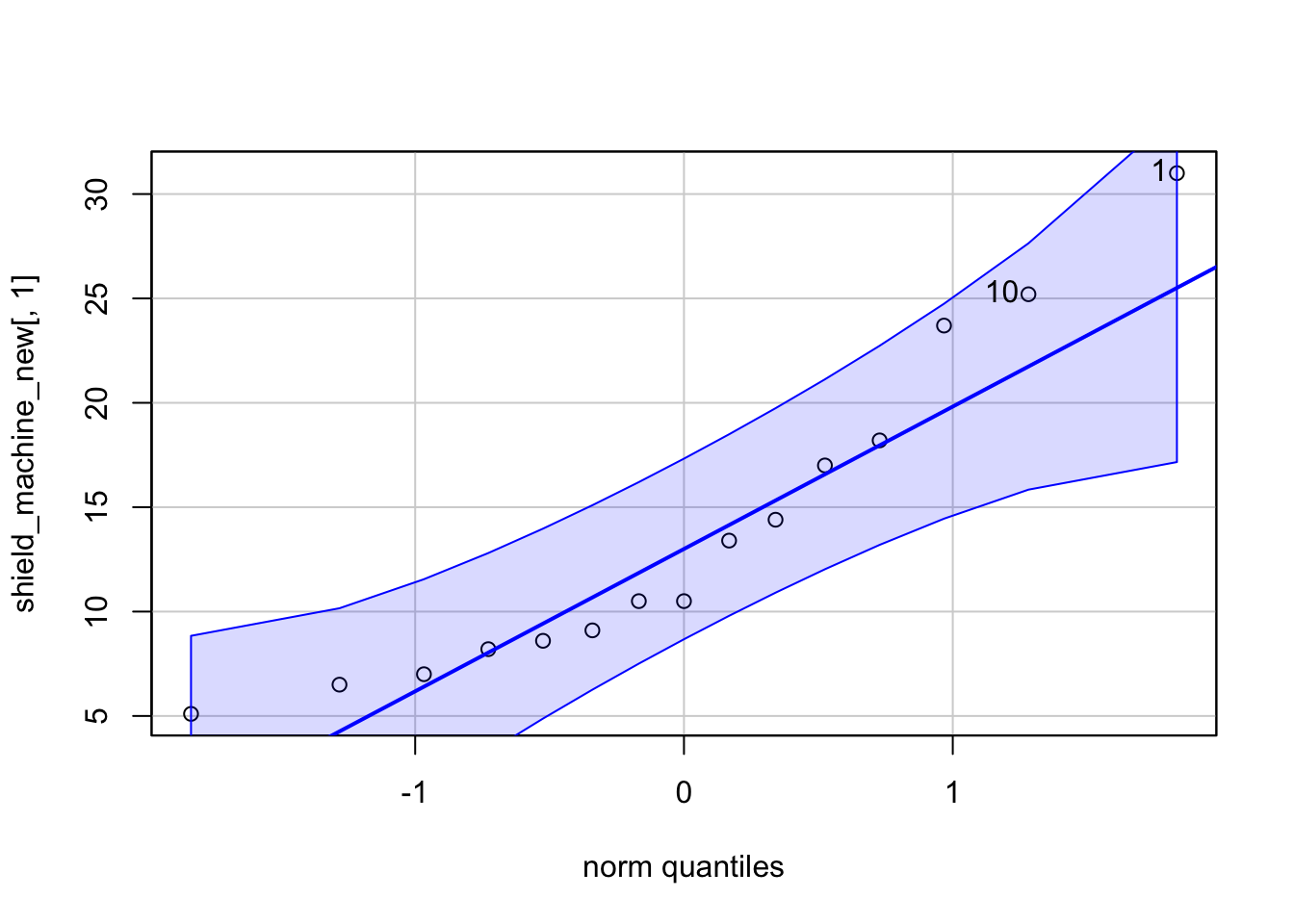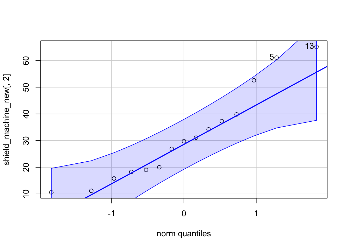 ## variances are not homogeneous# ------------## (b)# ------------## Not appropriate because ANONA requires normality of data and homogeneous variances.# ------------## (d)# ------------apply(shield_machine_new, 2, var)