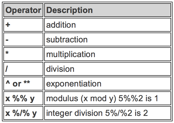 (x <- x + 6) # We can reassign any value to the variable we created[1] 11