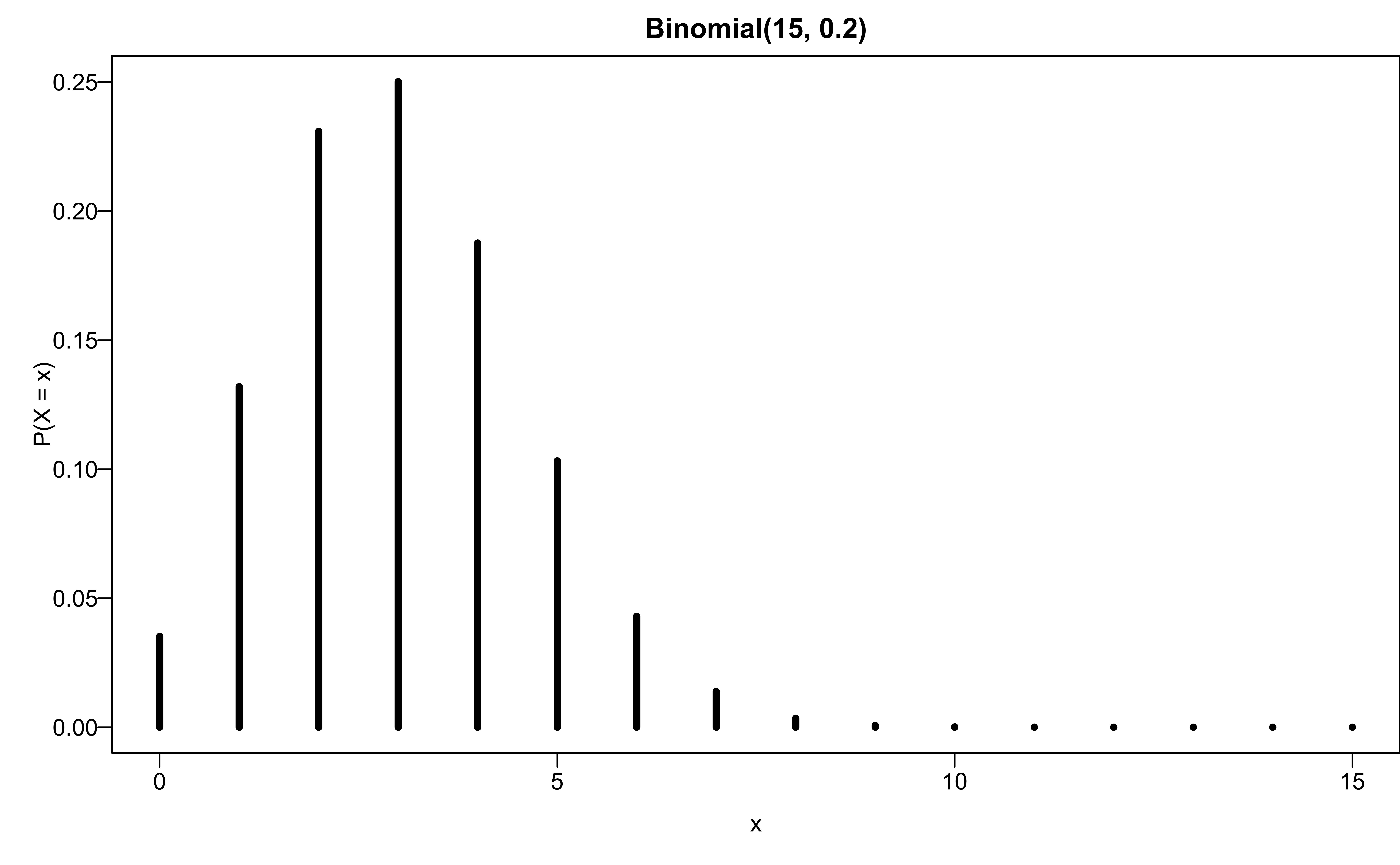 Suppose it is a binomial experiment with \(n = 15\) and \(\pi = 0.2\).