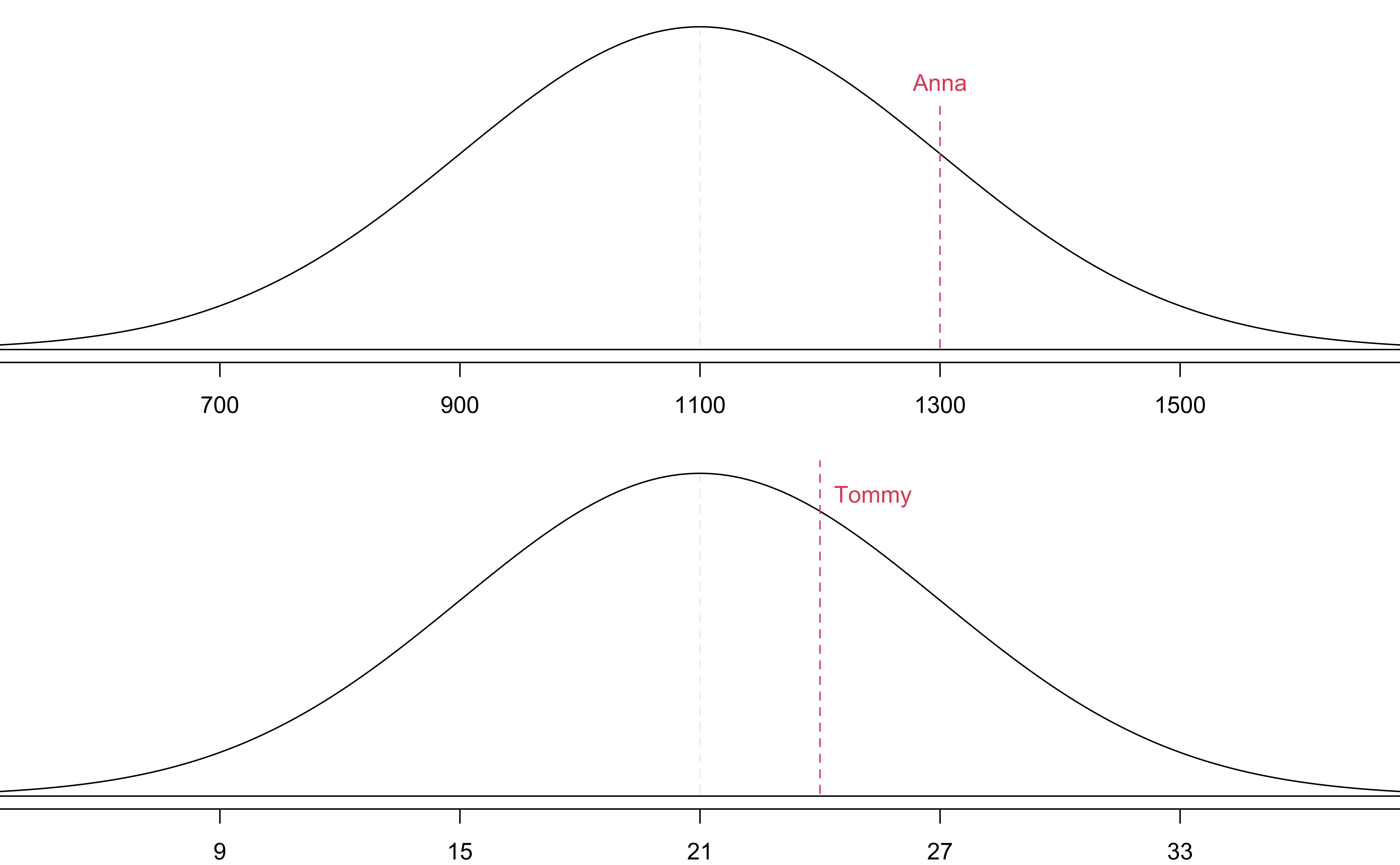 Suppose Anna scored 1300 on her SAT and Tommy scored 24 on his ACT. Who performed better?