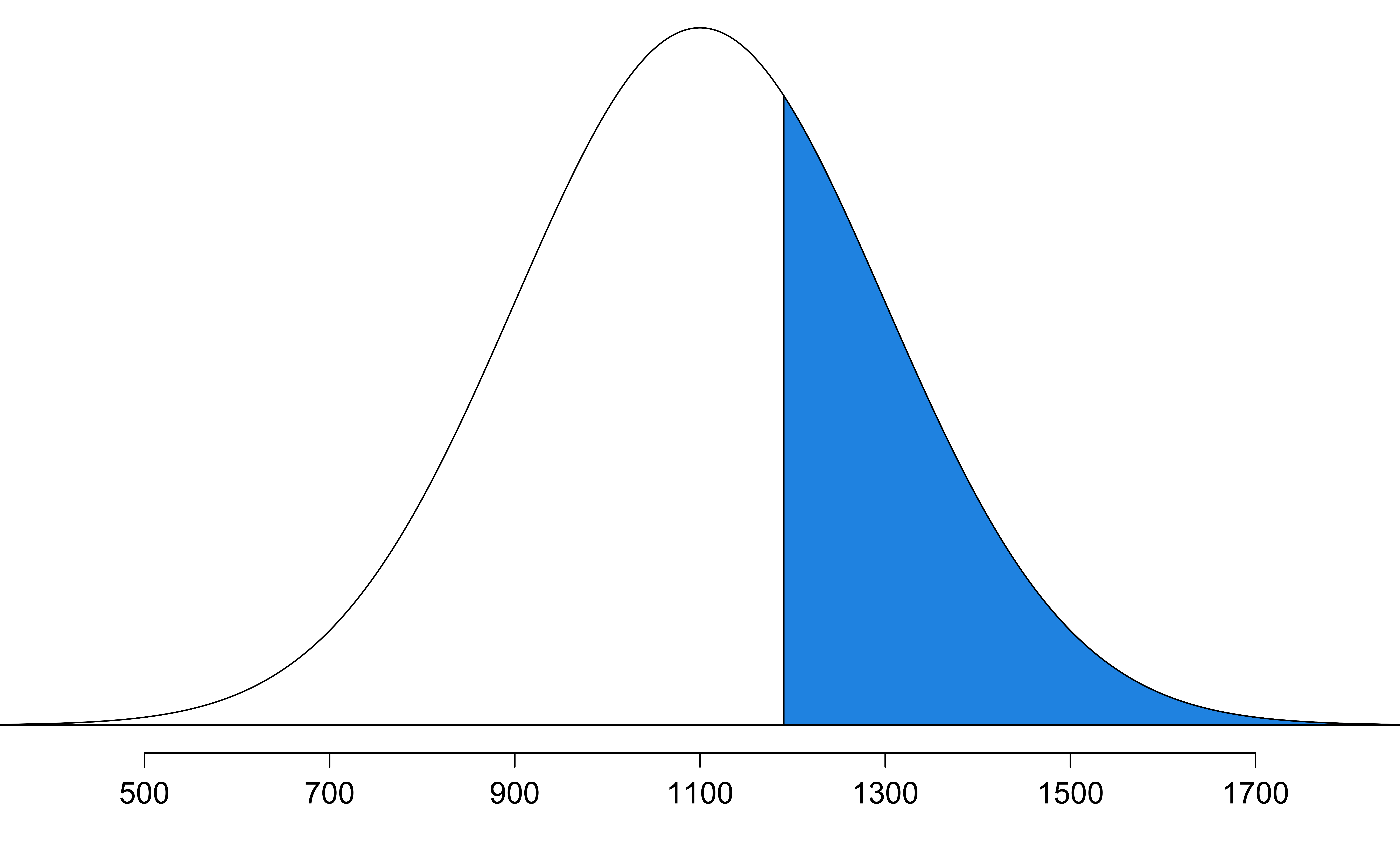 pnorm(q = 1190, mean = 1100, sd = 200,