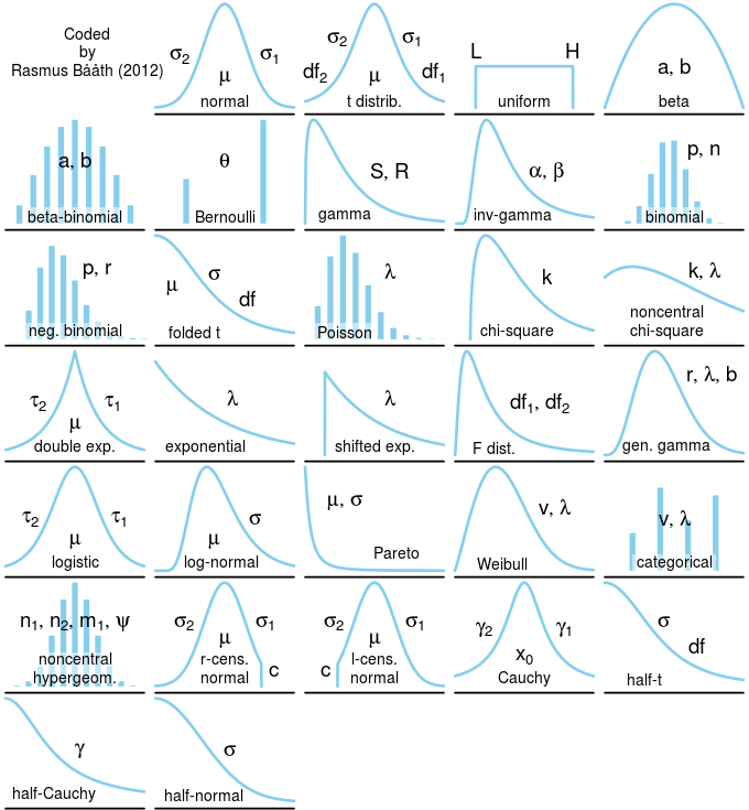 Some other common distributions include uniform, exponential, gamma, beta, inverse gamma, Cauchy, etc. (MATH 4700)